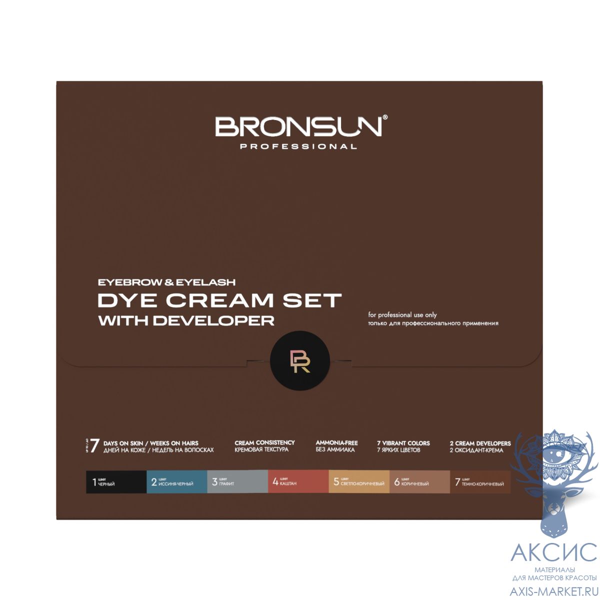 - Крем-краска для бровей и ресниц BRONSUN, цвет темно-коричневый #7, 15 мл — 1 шт.;