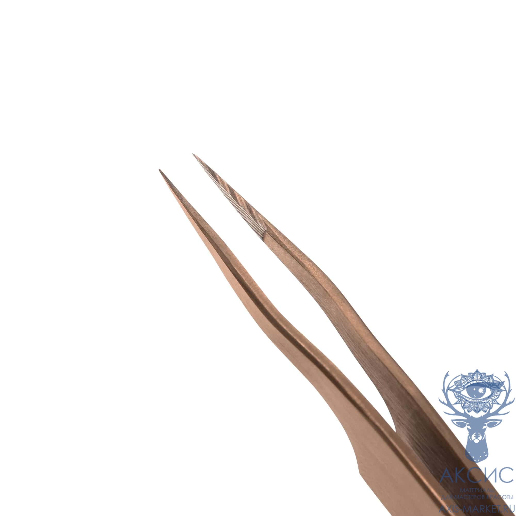 Пинцет для наращивания ресниц Lovely NanoFiber, серия Grace Elegante Bronze, тип Прямой с изгибом