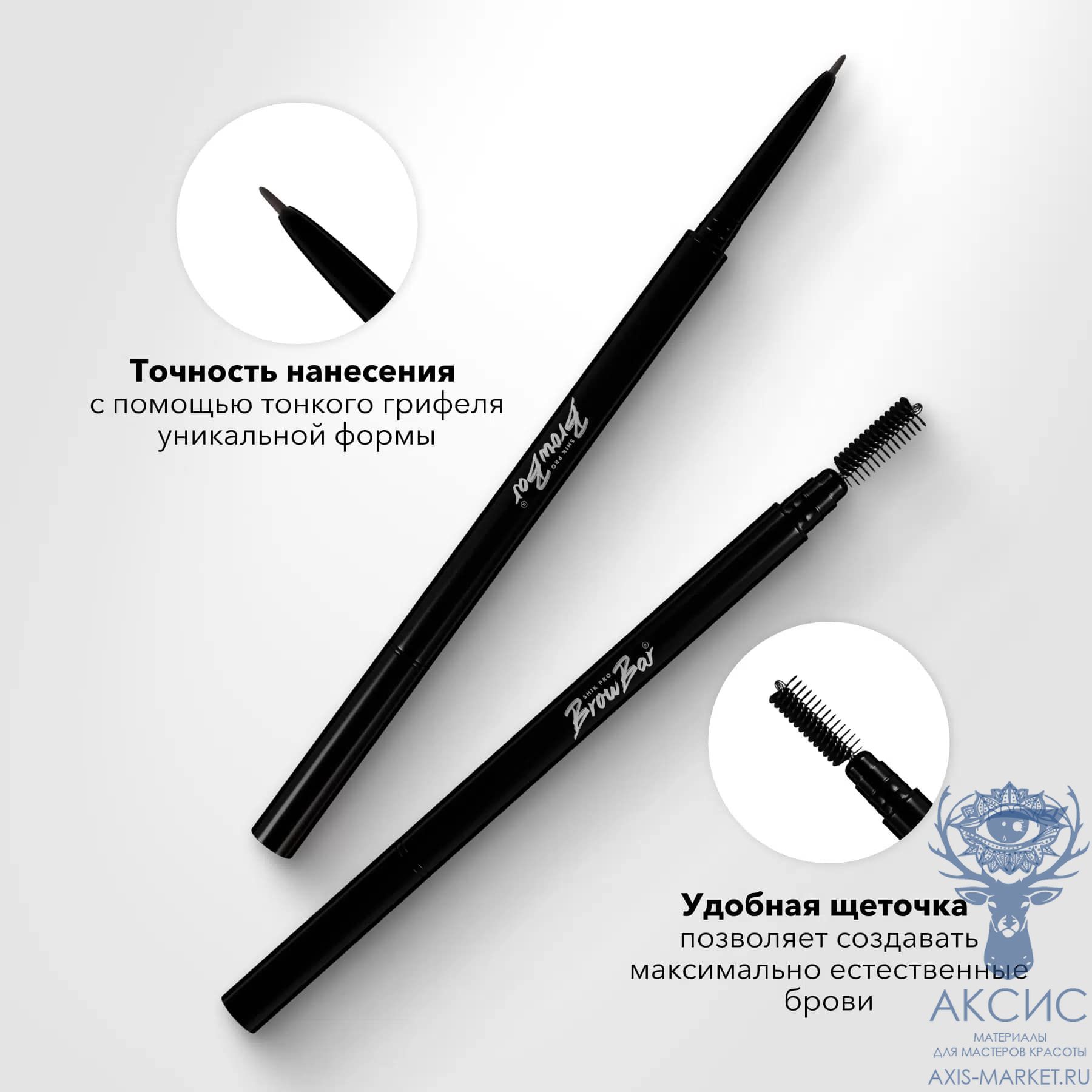 Тонкий грифель автоматического карандаша позволяет красиво и детально прорисовать волоски, придавая бровям визуальный объем. Удобная щеточка позволяет создавать максимально естественные брови.