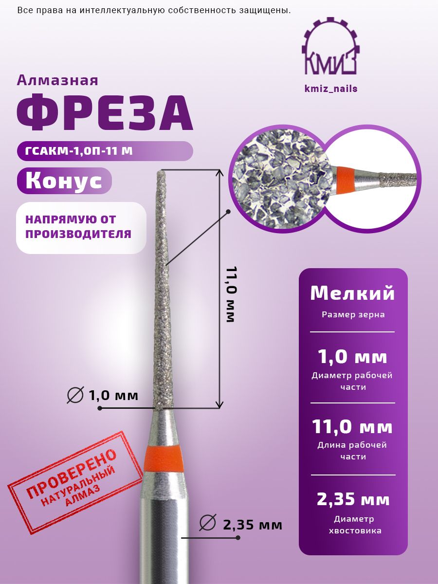 112737 Фреза алмазная головка КМИЗ Конус ГСАКМ 1,0П-11М