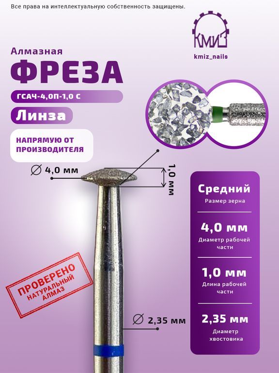 113523 Фреза алмазная головка КМИЗ ЛИНЗА ГСАЧ-4,0П-1,0С