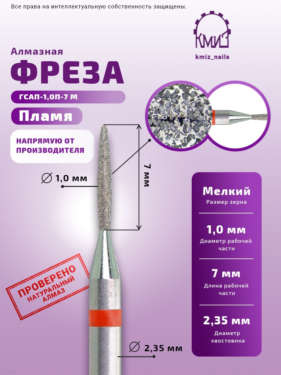113882 Фреза алмазная головка КМИЗ ПЛАМЯ ГСАП-1,0П-7М