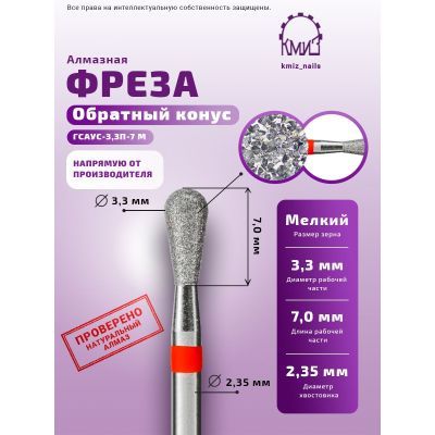 118166 Фреза алмазная головка КМИЗ Обратный конус ГСАУС-3,3П-7М