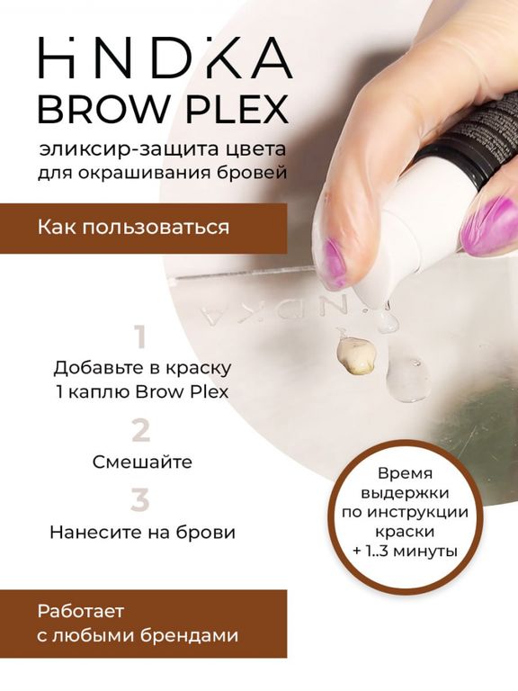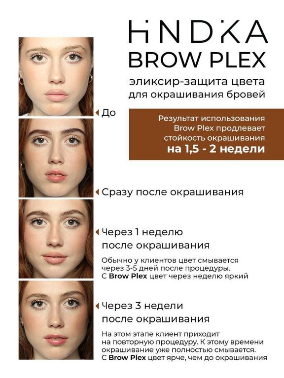 Профессиональное средство для эффективного окрашивания бровей Hindika BrowPlex. Позволяет добиться равномерного, глубокого, яркого оттенка, защищает структуру волос от повреждений и увеличивает стойкость цвета на 1-2 недели.