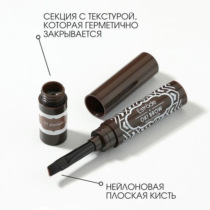 Помадка для бровей ESTRADE «OK! BROW» представлена в четырех оттенках: шатен, брюнет, русый и темно-русый. Среди них ты обязательно найдешь подходящий!