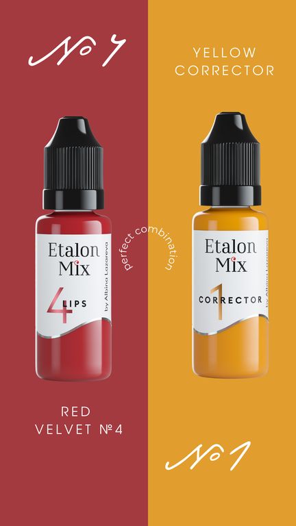 Микс #4 «Красный бархат» — яркий акварельный красный оттенок для создания ярких губ. Укрывистый. Для получения алого цвета хорошо сочетается с желтым корректором. Возможно использовать в виде яркой алой нотки в базовые оттенки для создания более яркого акцента.