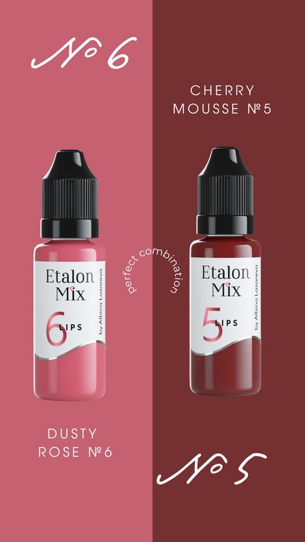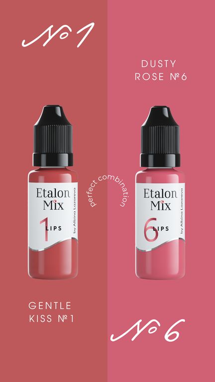 Микс #6 «Пыльная роза» — пастельный нежный розовый с лёгким лиловый отливом. Выбор большинства женщин, предпочитающих естественные оттенки перманентного макияжа. Для более ярких оттенков хорошо сочетается с красным бархатом, вишневым мусом и терракотовый корректор.