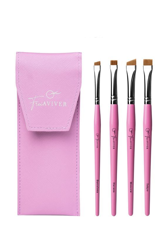 FreiAVIVER Набор кистей для бровей в чехле (4шт), розовый