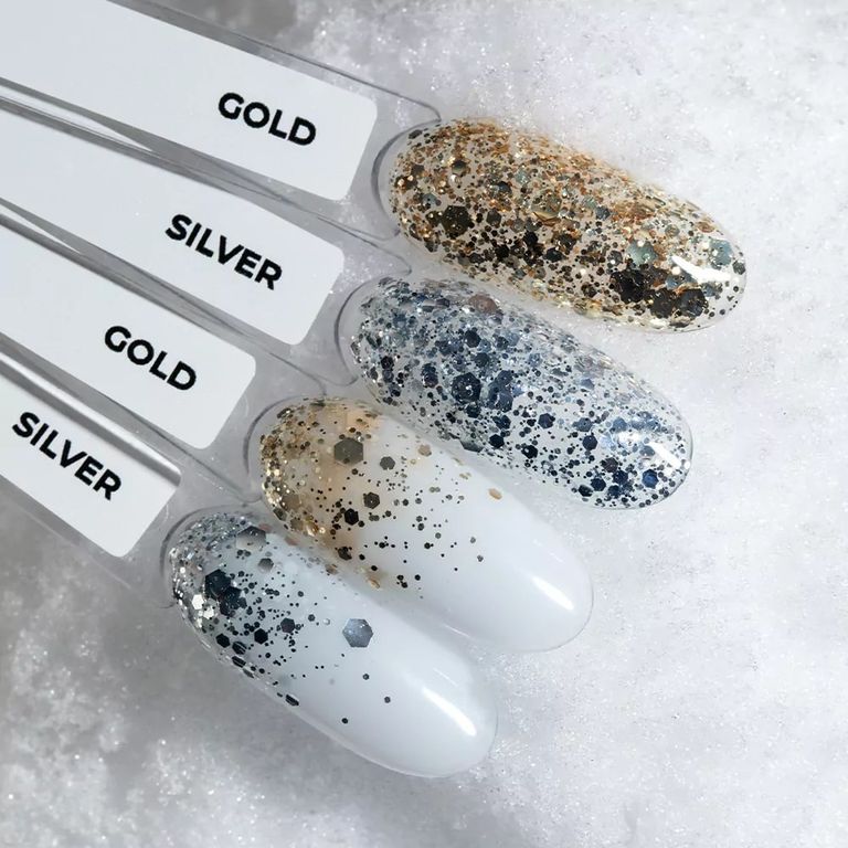 Очень удобные в нанесении, шестигранники разных размеров создают невероятный эффект, позволяя комбинировать с разными цветовыми базами, делать растяжку.