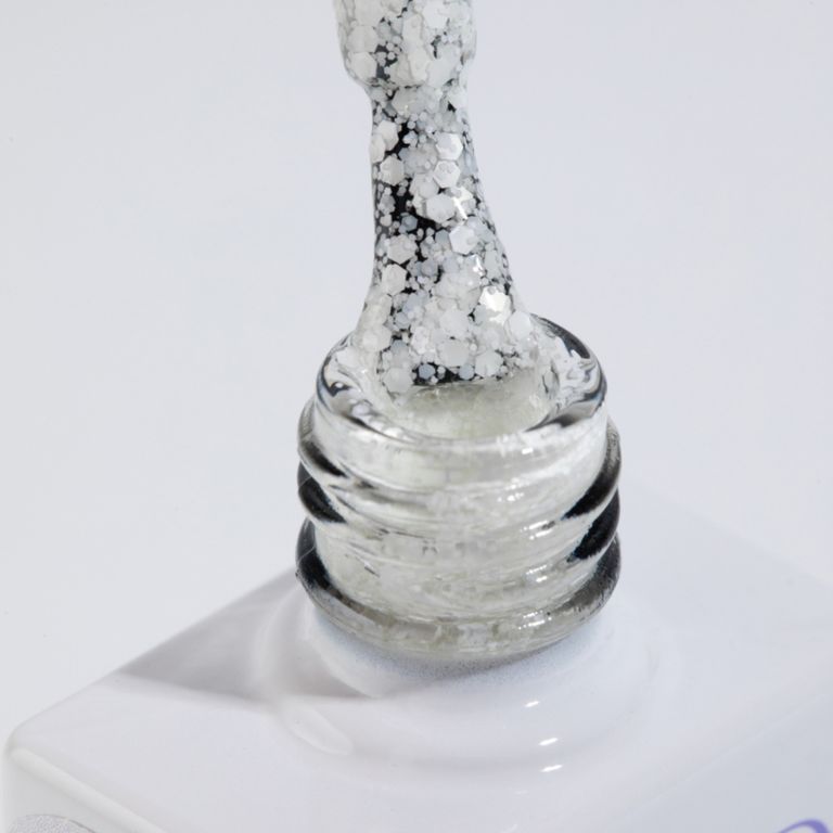 Гель-лак белый, с шестигранниками, плотный.