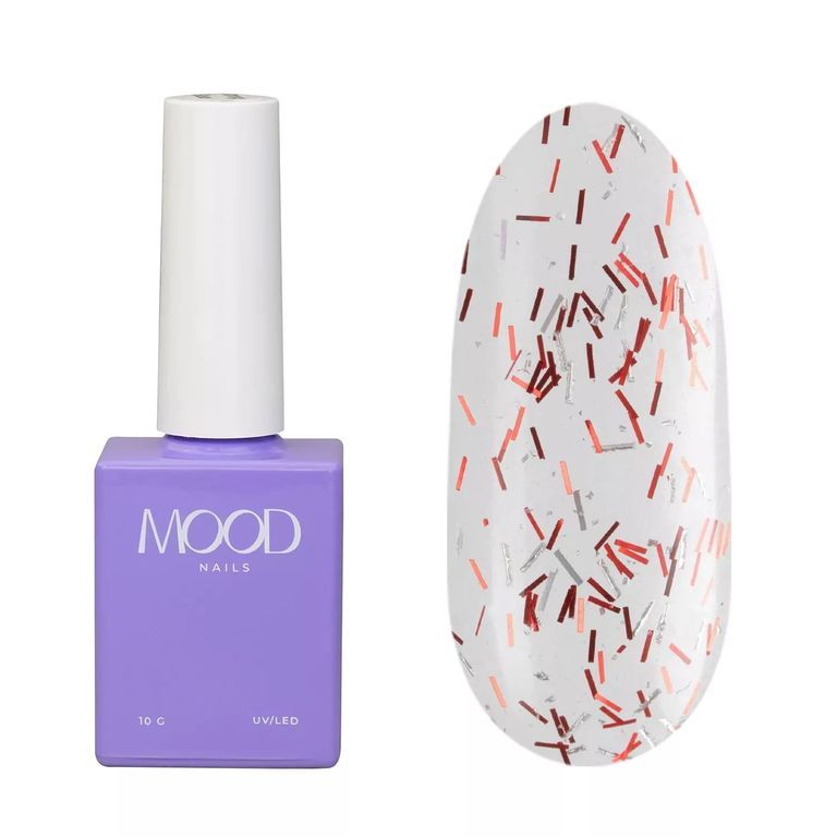 Прозрачный топ без липкого слоя, с голографическими палочками красного и серебряного цвета. Данный продукт поможет мастеру создать уникальный результат с глянцевым эффектом. Великолепно смотрится как на тёмных, так и на светлых оттенках.