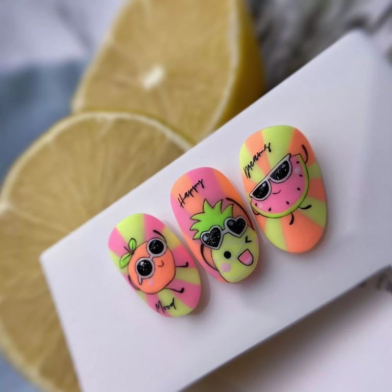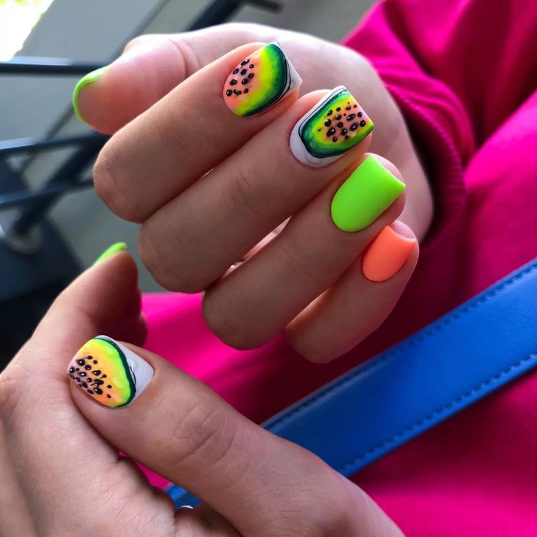 Гель-лак выбеленного неоново-салатового оттенка, без эффекта, плотный.