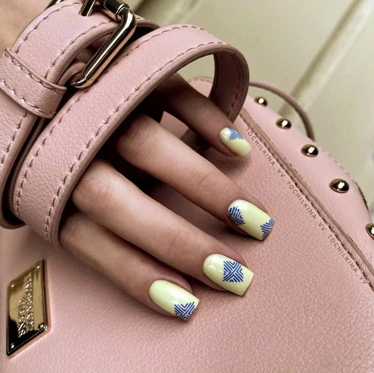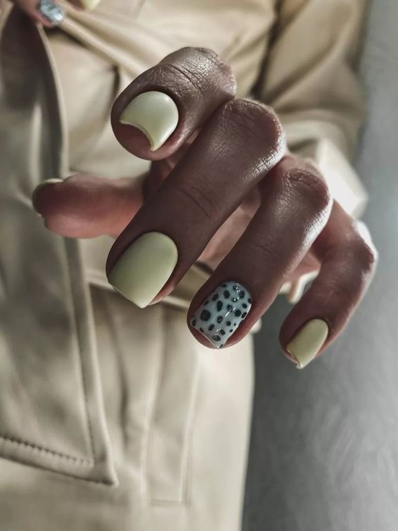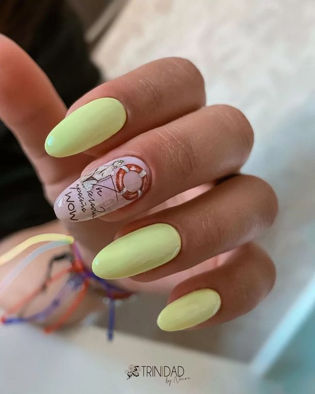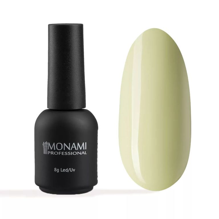 Гель-лак светло-желтого оттенка, без эффекта, плотный.