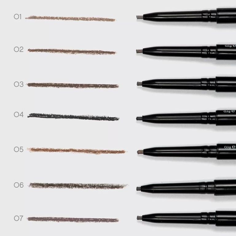 С одной стороны карандаша - тонкий стержень slim, который позволяет скорректировать форму бровей и добавить цвет, по желанию рисуя широкую или тонкую линию в технике микроблендинга, закрашивая пустоты.