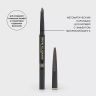Уникальность карандаша — ультраплоский скошенный стержень в форме двустороннего лезвия, который можно использовать сразу двумя способами. Если тебе нужно прорисовать отдельные волоски и придать бровям естественный вид, воспользуйся острым тонким кончиком грифеля. А если необходимо создать графичные брови и заполнить их цветом, используй плоскость грифеля для натуральной растушевки. Щеточка-расческа на другом конце карандаша поможет равномерно распределить оттенок и придать бровям нужную форму. Формула на основе натуральных восков обеспечивает стойкость текстуры.