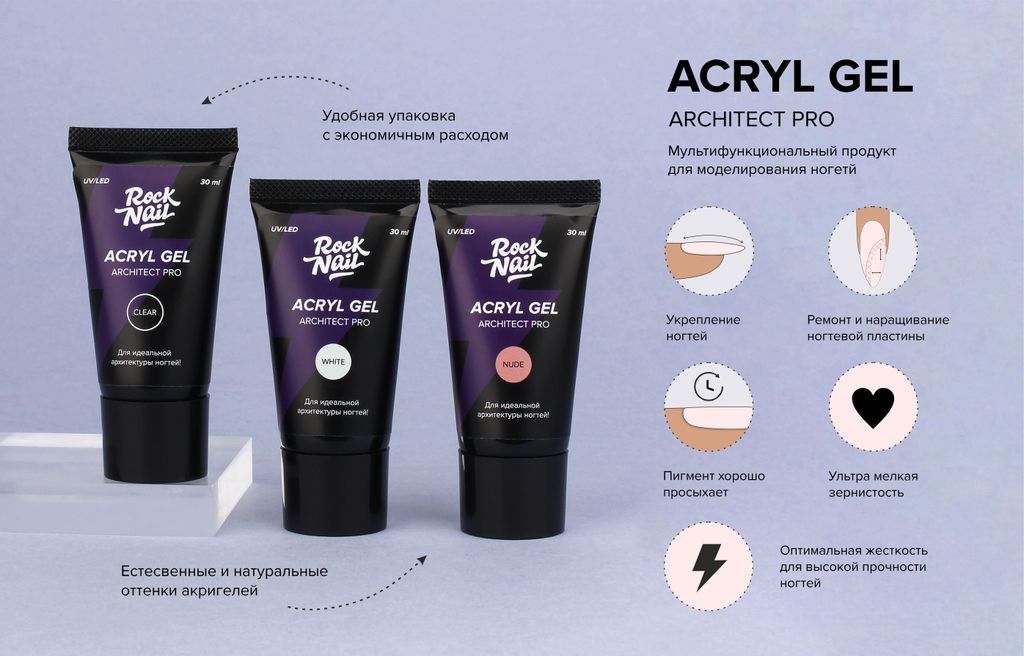 Создавай суперстойкое покрытие с прозрачным акригелем Architect PRO! Смелые дизайны и безумная длина или элегантные образы и классические формы? Решаешь только ты!