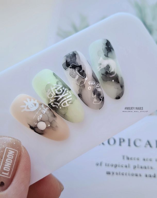 Изготавливается на водной основе и не требует полимеризации - высыхает на открытом воздухе,в течении 30-120 секунд, оставляя красивые рисунки и абстрактные разводы;