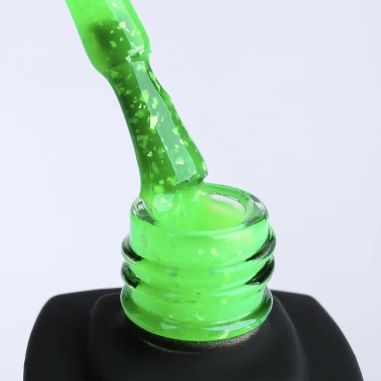 Молодые листья в лучах яркого солнца, шарик твоего любимого лаймового мороженого… Как сделать этот день еще ярче? Просто добавь смелый нейл-образ с неоново-зеленой базой с частичками натуральных ракушек!
