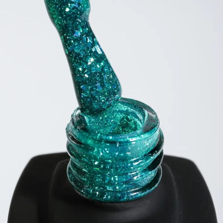 Яркий изумрудный оттенок ласкового тропического моря выглядит еще притягательнее в сочетании со светоотражающими и голографическими частицами. Правда, эту базу так и хочется примерить?