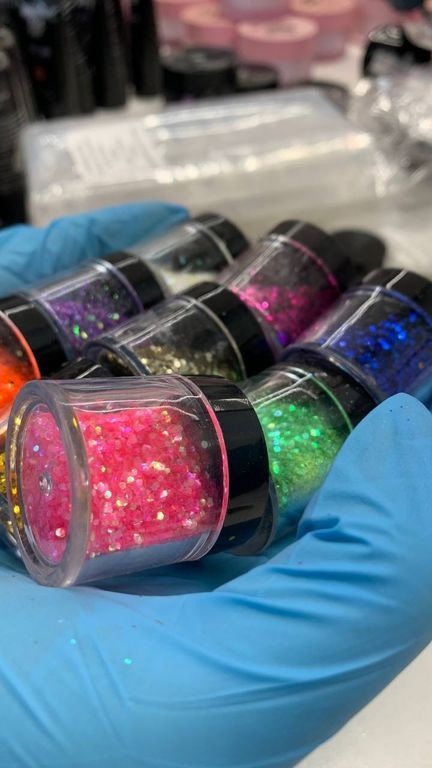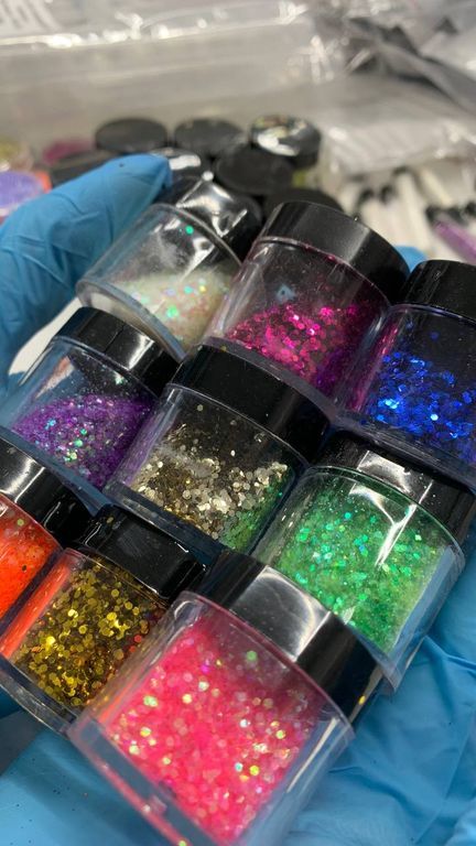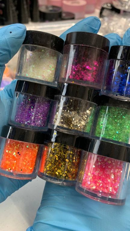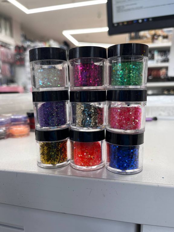 Блестки с формой шестигранника используются для придания необычного дизайна покрытия. За счет особенной формы они красиво и разнообразно переливаются на свету.