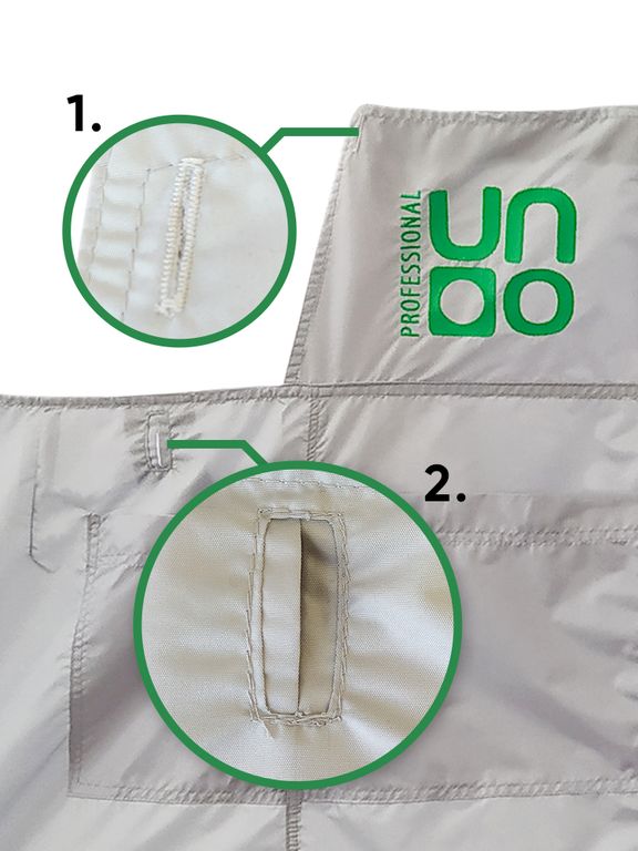 Ткань из которой изготовлен фартук (Таслан) приятна на ощупь, отличается необычайной легкостью и прочностью, устойчива к трению, многократным изгибам и воздействию ультрафиолета, обладает воздухопроницаемой способностью.