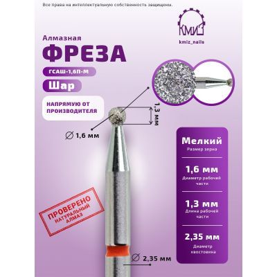 Фреза алмазная головка КМИЗ Шар ГСАШ 1,6П-М