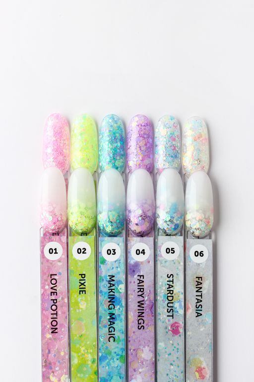 • Завораживающий эффект фейской пыльцы на ногтях любой однотон превратит в сказочный нейл-образ.