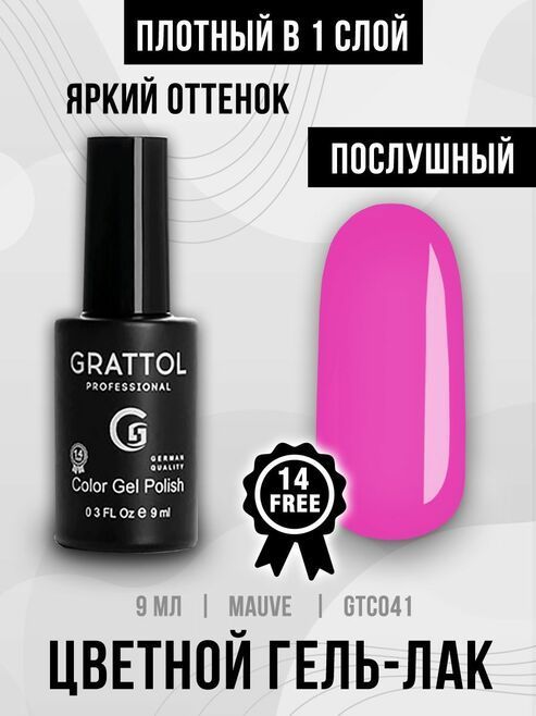 Гель-лак Grattol GTC041 Mauve, 9мл