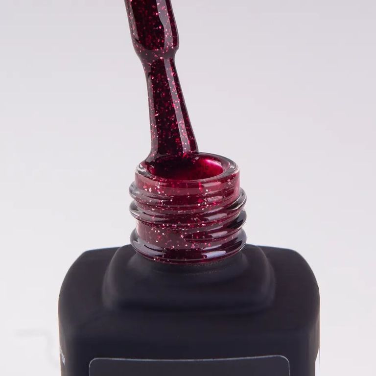 Такого гель-лака у тебя еще не было. В насыщенной темной основе цвета вишневого сока утоплен ослепительный алый шиммер. Уже знаешь, какие образы создашь с ним?