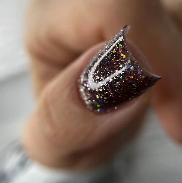 Платье с пайетками, маникюр с мелким бронзовым и крупным голографическим глиттером… Детка, ты звезда!