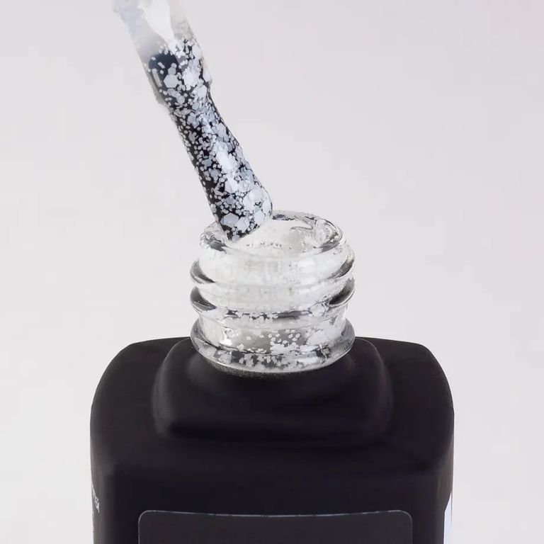 Только позитив и ничего лишнего! У этого гель-лака прозрачная база, наполненная матовыми белыми частичками разного размера. Он просто обязан быть в твоей коллекции!