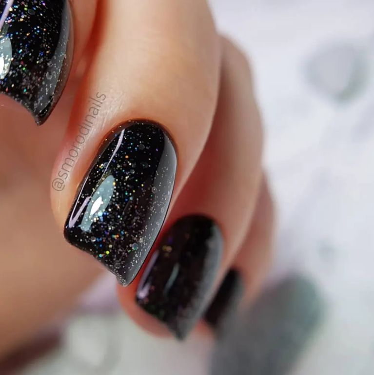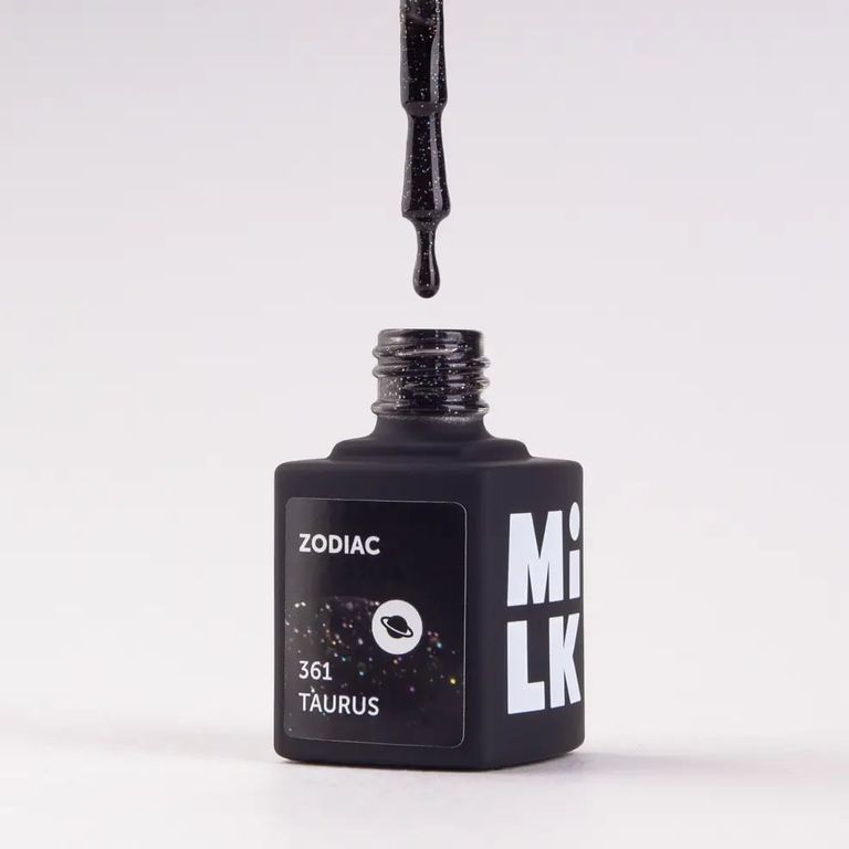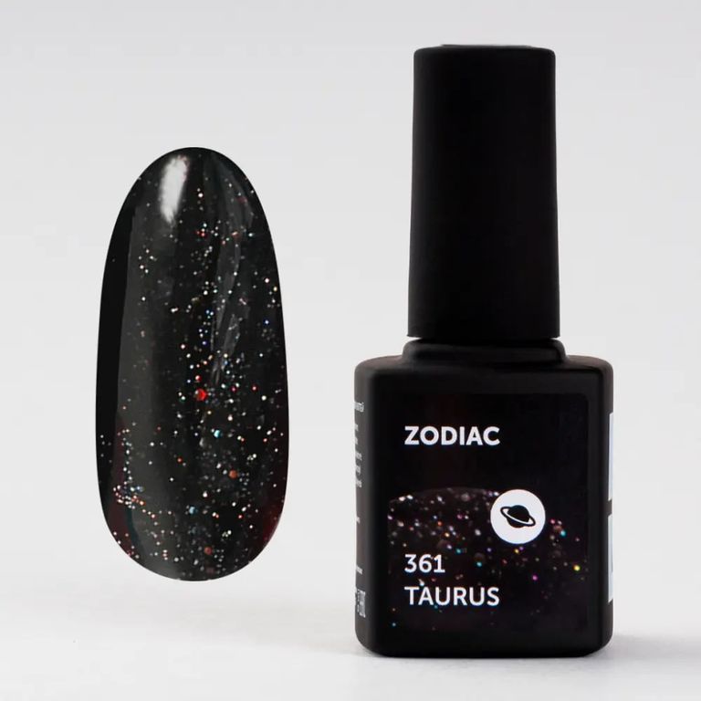 Трудно представить себе более упорного, трудолюбивого и склонного к постоянству знака, чем Телец. Благородство и независимость представителей этого знака стихии земли вдохновили нас на создание черного гель-лака с яркими вкраплениями голографического глиттера разных размеров.