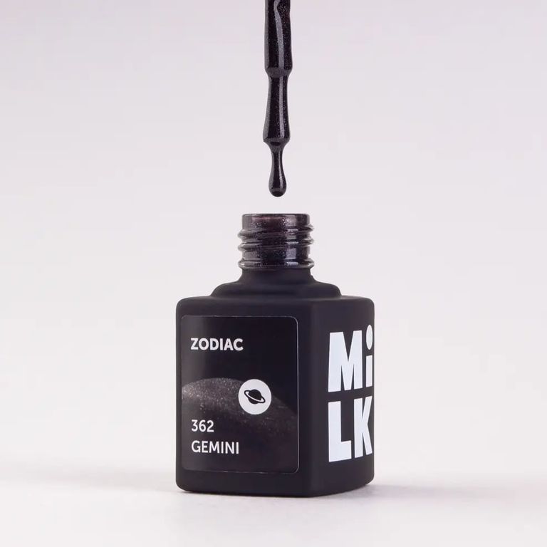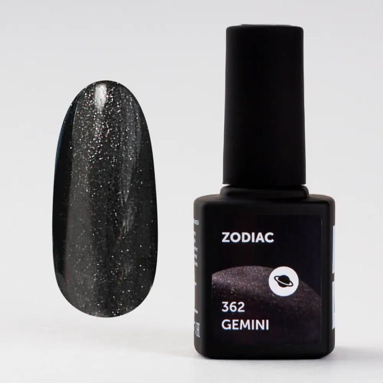 Близнецов отличает невероятная двойственность и непостоянство во всех проявлениях. Каждый представитель этого воздушного знака переменчив и сочетает в себе, казалось бы, несочетаемые черты характера, поэтому посвященный Близнецам оттенок гель-лака — на первый взгляд сдержанный графитово-серый шиммер, который под электрическим освещение рассыпается фейерверком голографических искр.