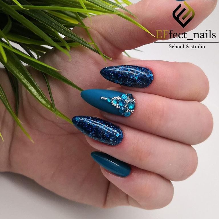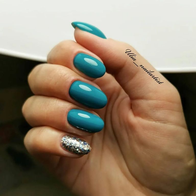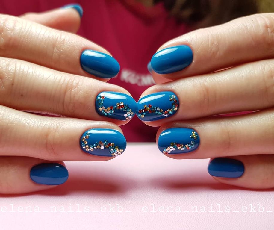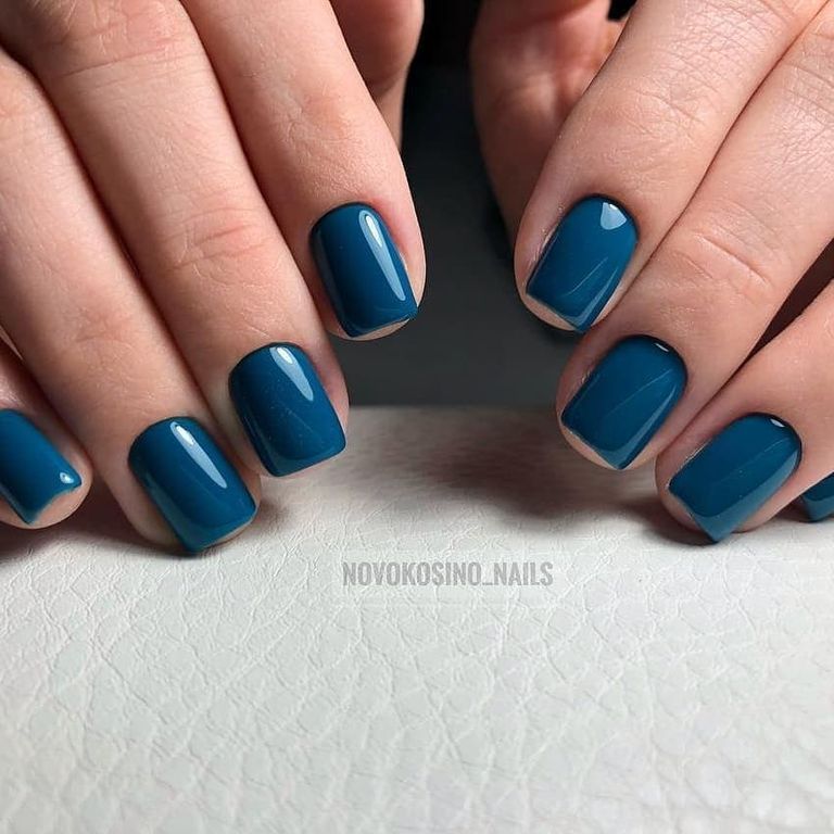 Гель-лак синяя лазурь, без эффектов, плотный.