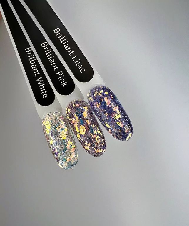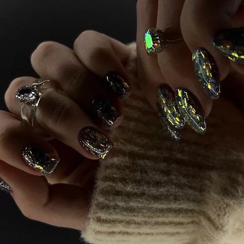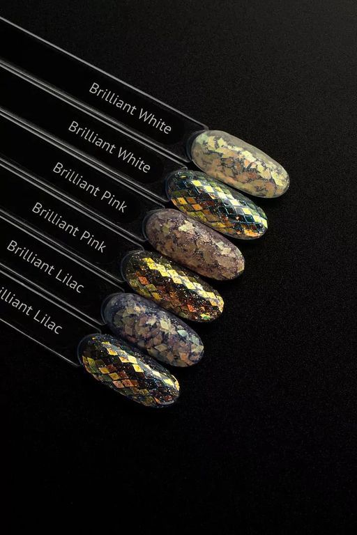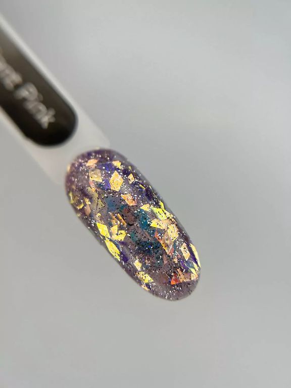 Гель-лак приглушённый розовый, с голографическими ромбами и мелкими серебряными блестками