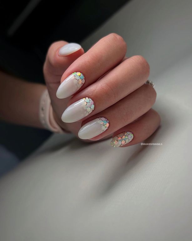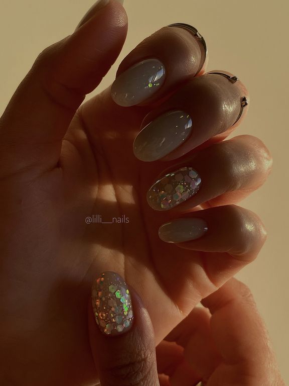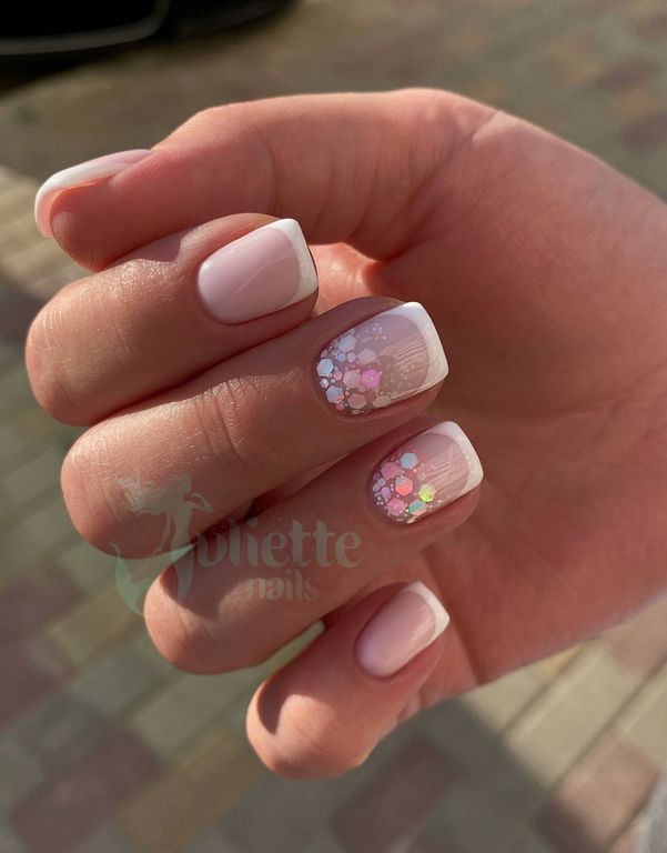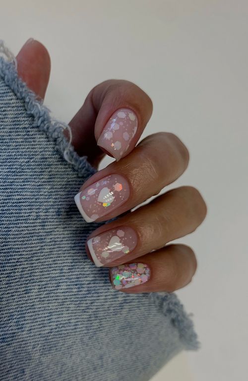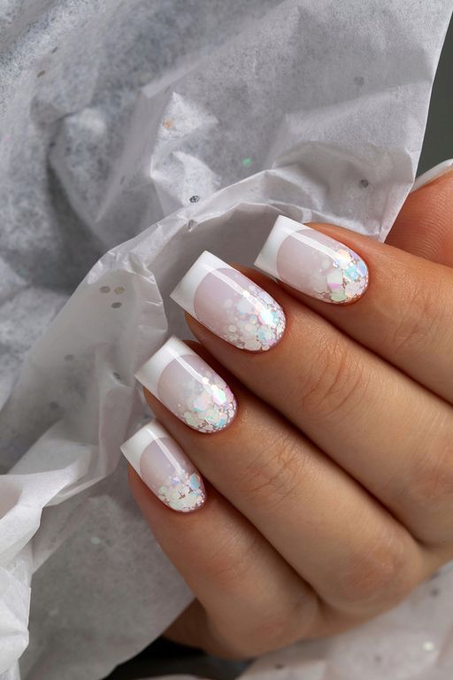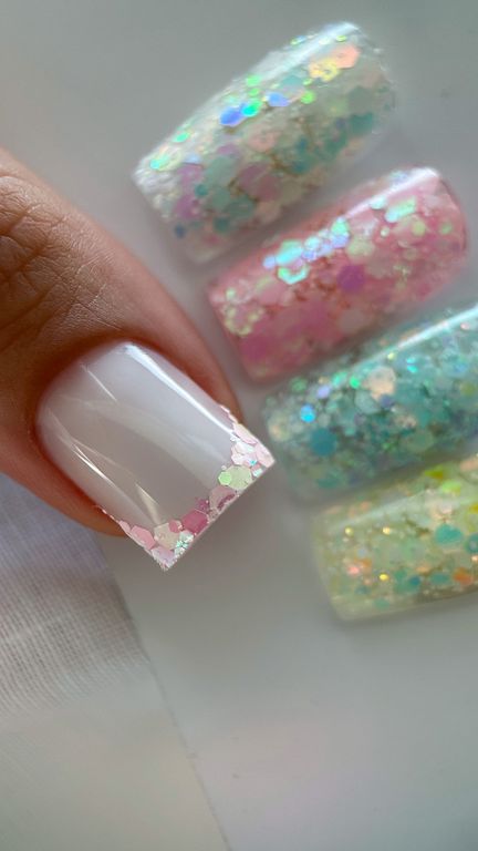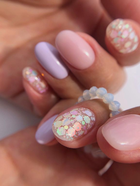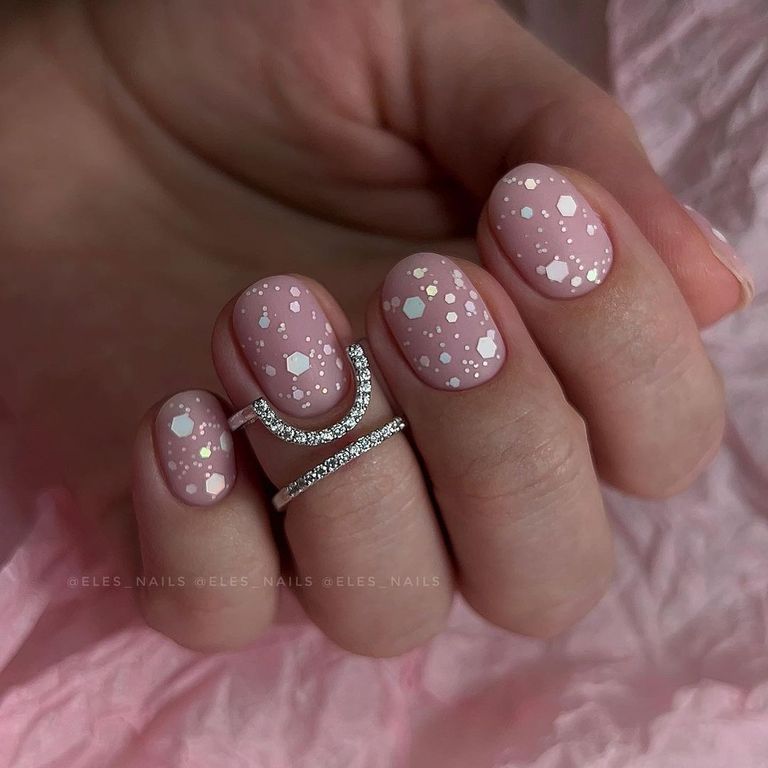 Гель-лак c миксом голографических шестигранников.