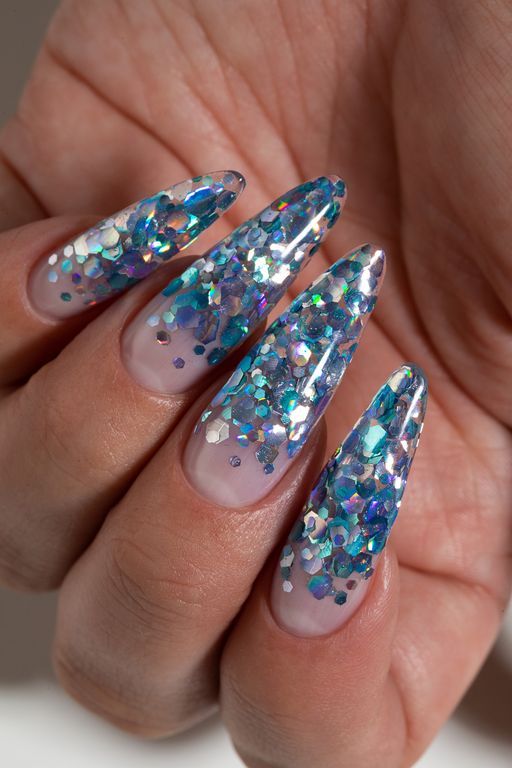 Можно покрывать ими ногтевую пластину полностью или дополнить блёстками выразительный дизайн в классическом маникюре и в аквариумном наращивании. Блёстки удобно наносить как тонкой, так и широкой кистью, используйте любой удобный инструмент для создания креативного дизайна!