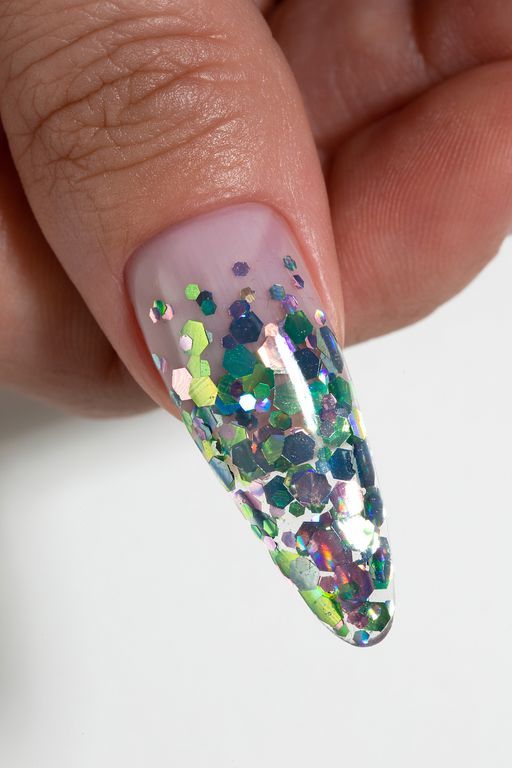 Можно покрывать ими ногтевую пластину полностью или дополнить блёстками выразительный дизайн в классическом маникюре и в аквариумном наращивании. Блёстки удобно наносить как тонкой, так и широкой кистью, используйте любой удобный инструмент для создания креативного дизайна!