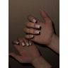 Гель-лак со светоотражающими частицами в бежевом оттенке.