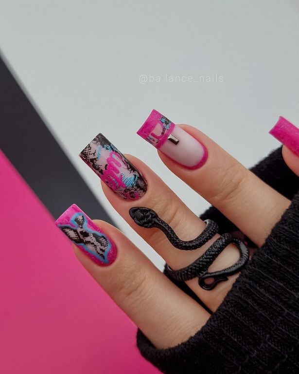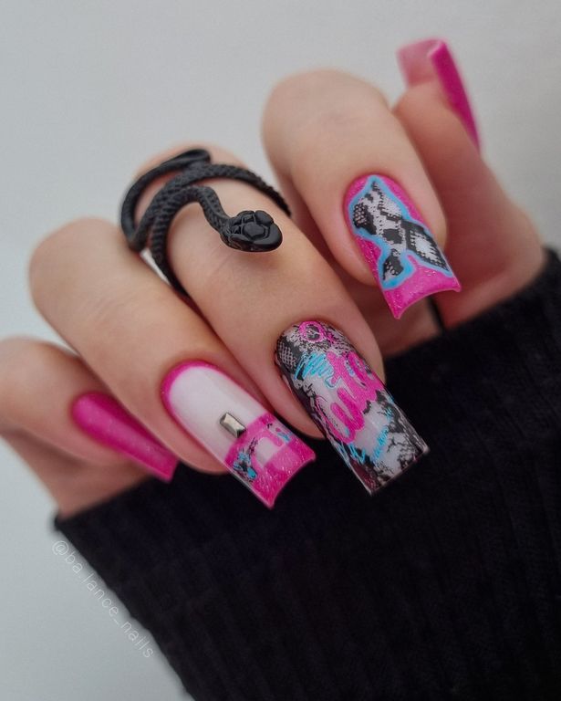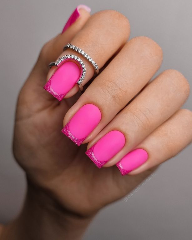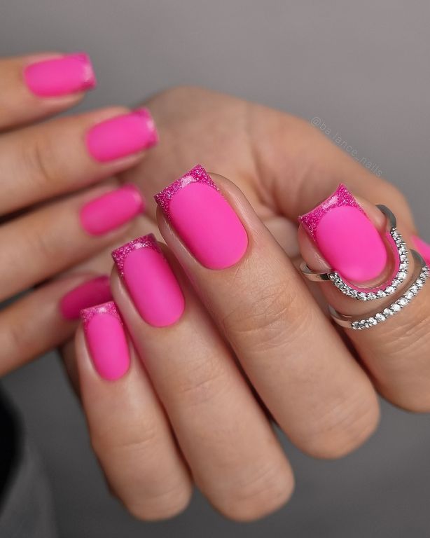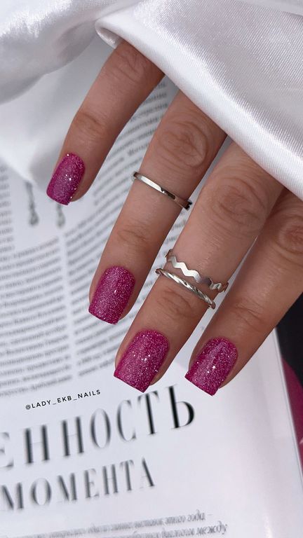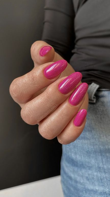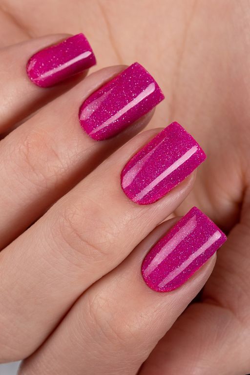 Гель-лак со светоотражающими частицами в розовом оттенке.