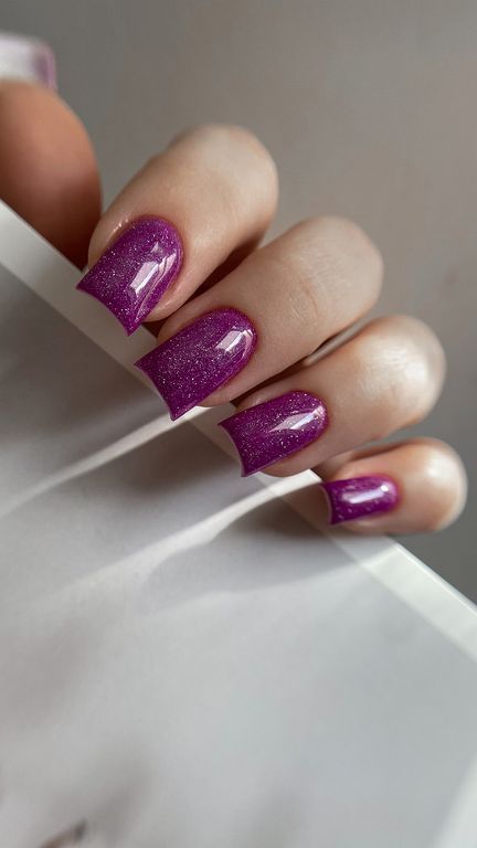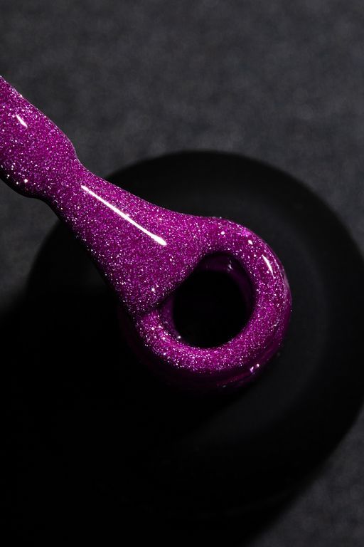 Гель-лак со светоотражающими частицами в сиреневом оттенке.