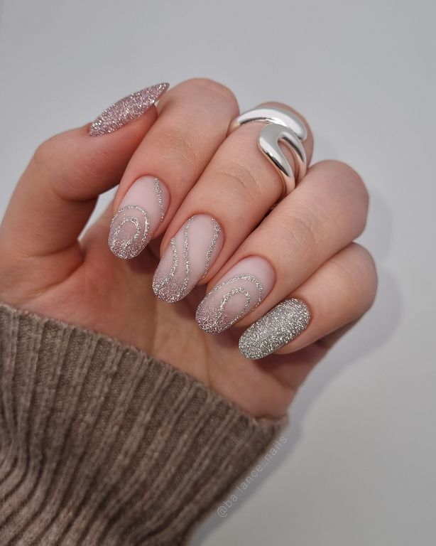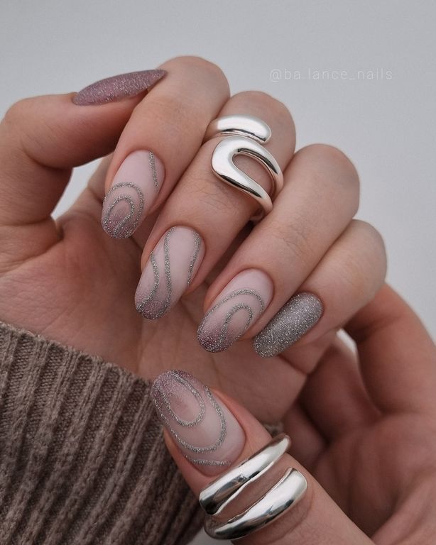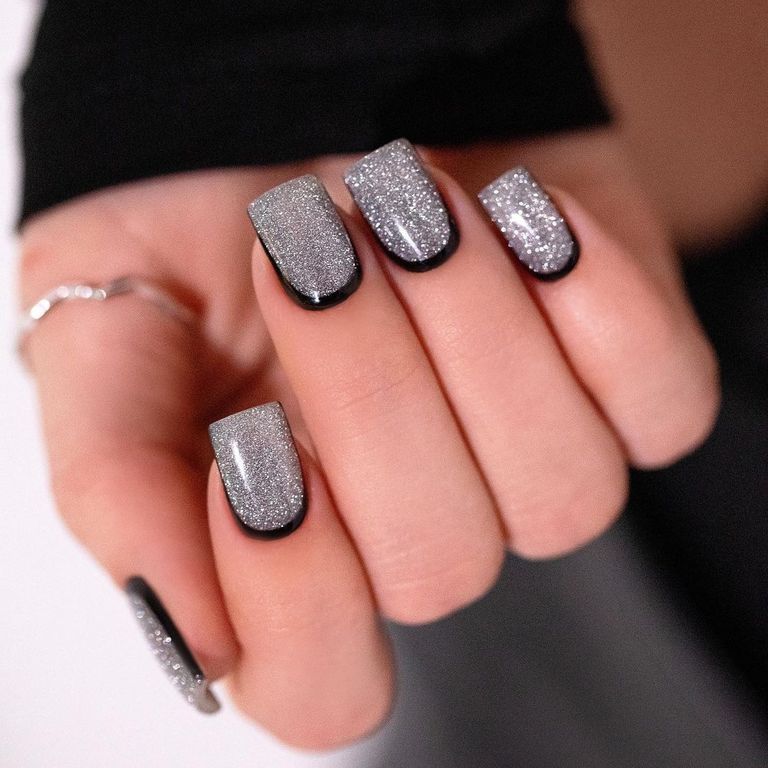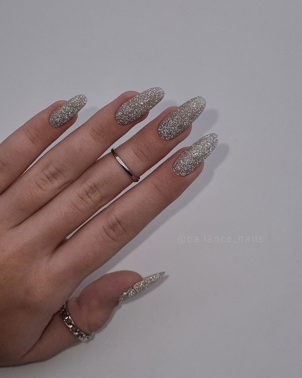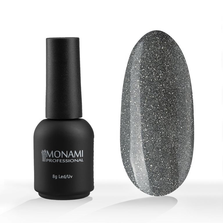 Гель-лак со светоотражающими частицами в серебристом оттенке.