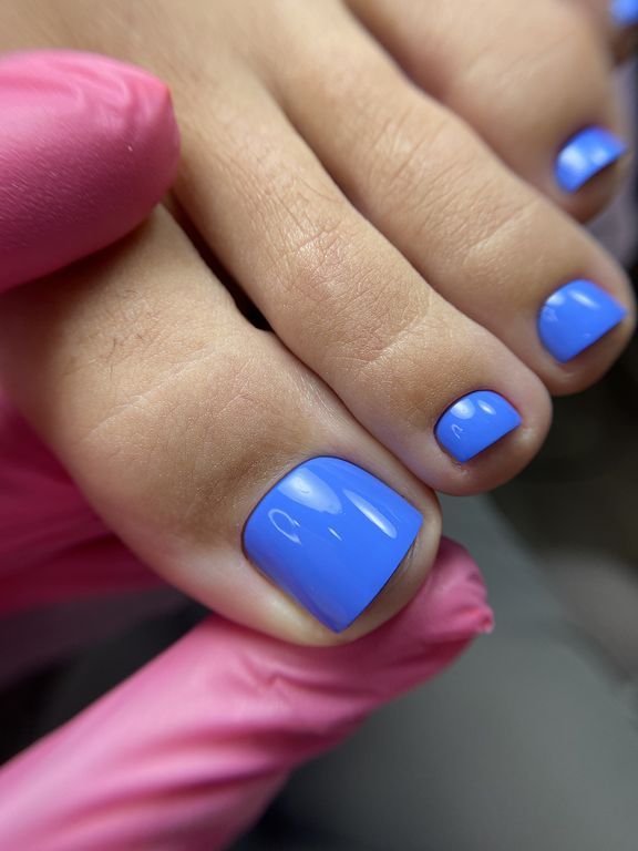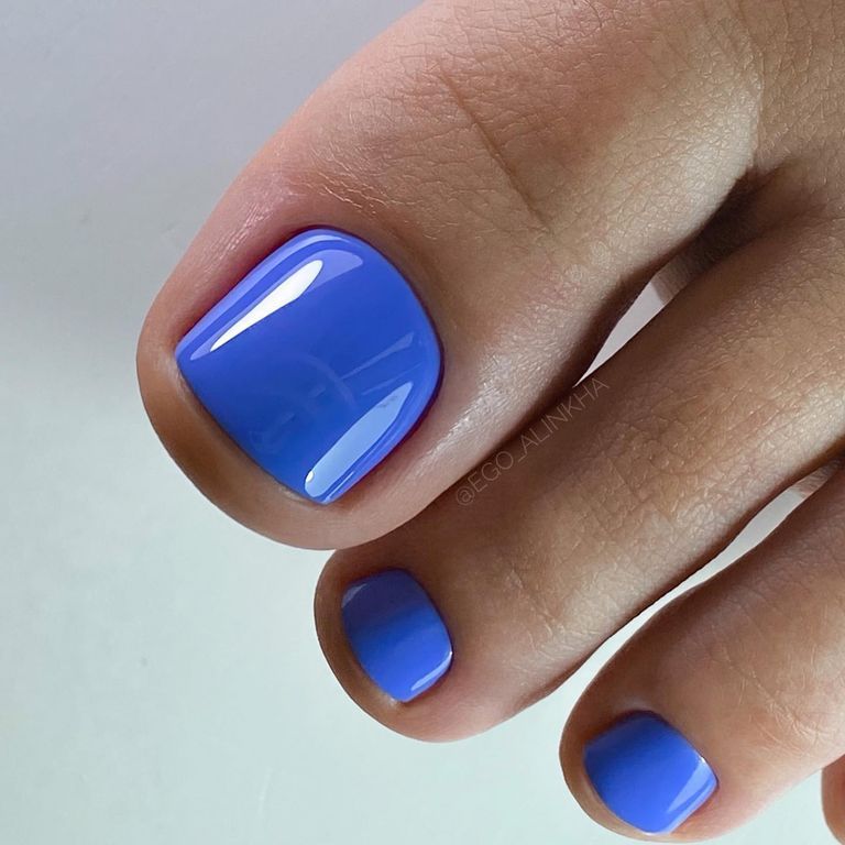 Гель-лак синего оттенка, без эффектов, плотный.
