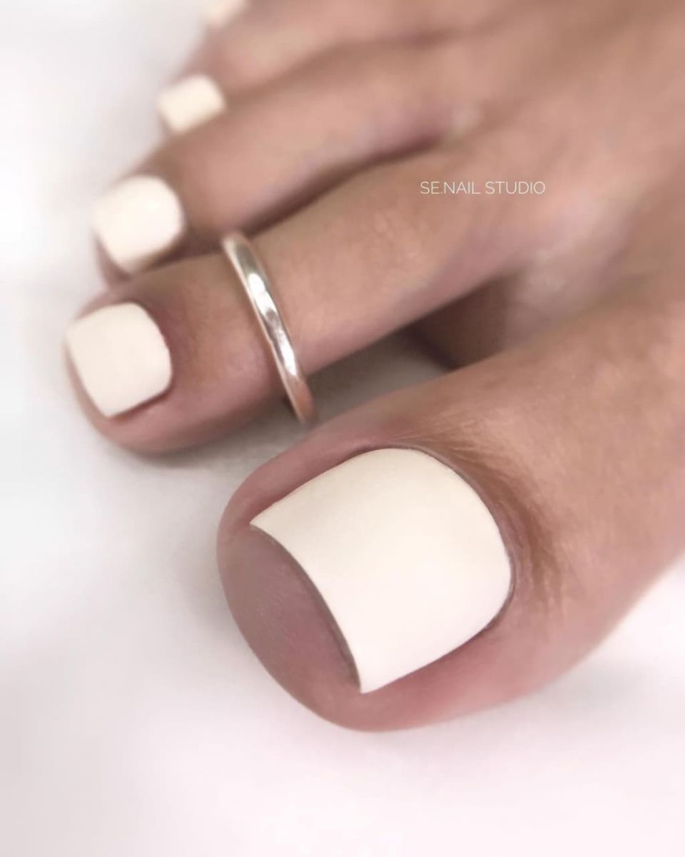 Гель-лак молочного оттенка, без эффектов, плотный.