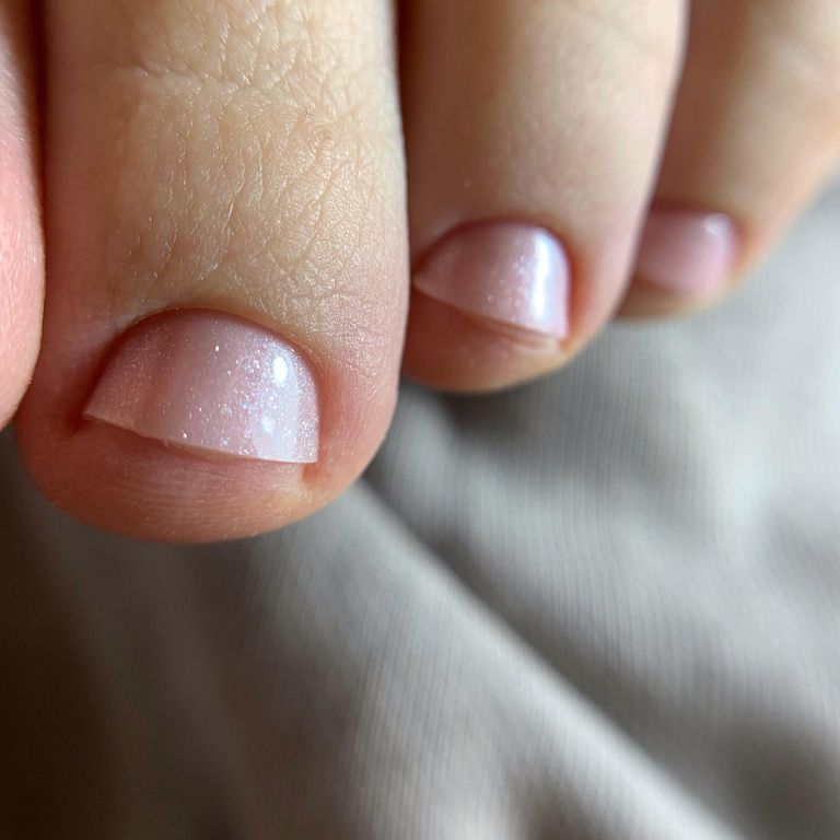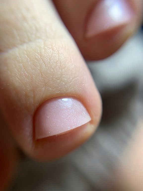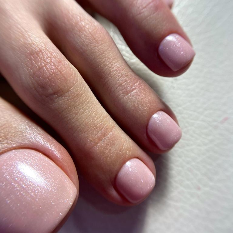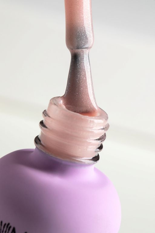 Гель-лак бежевого оттенка с шиммером, плотный.