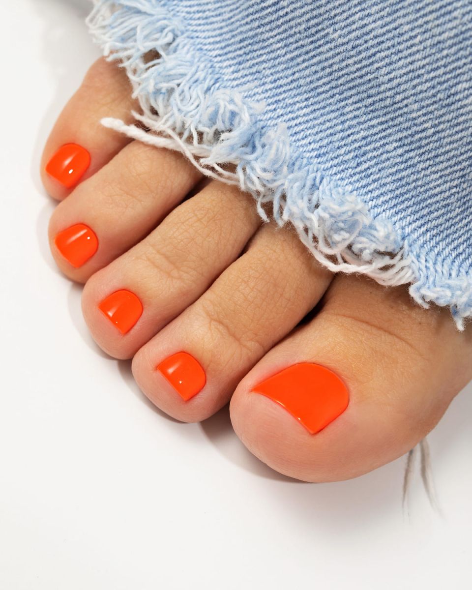 Гель-лак оранжевого оттенка, неоновый, плотный.