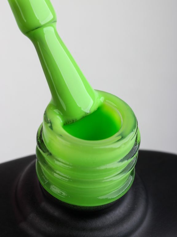Сочный лаймово-зеленый гель-лак кремовой текстуры. Маникюр с ним бодрит, как глоток цитрусового смузи в жаркий день!