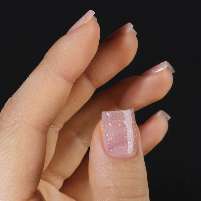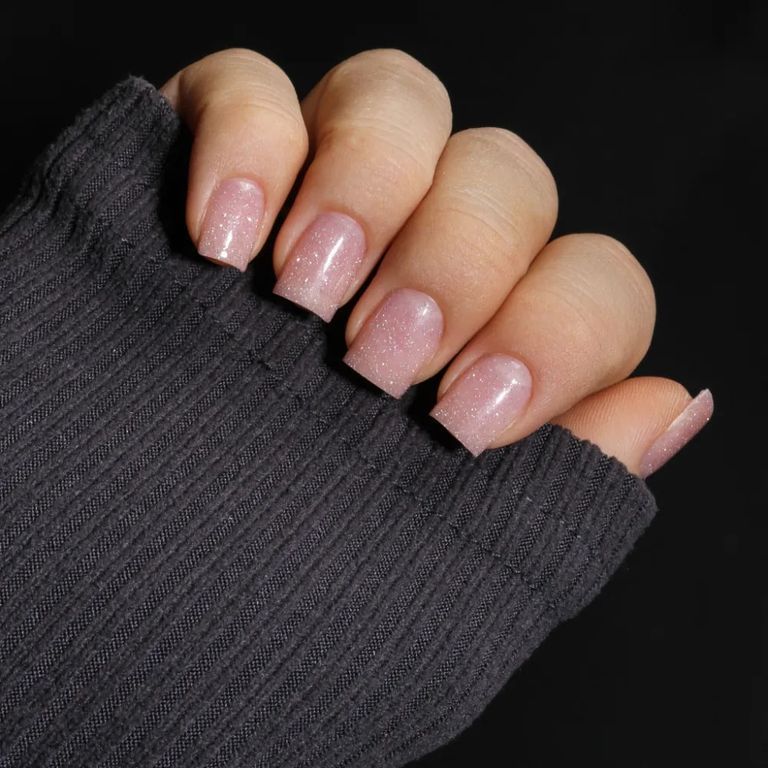 Любишь нюды, но иногда хочется чего-то особенного? Примерь гель насыщенного карамельного оттенка с эффектными светоотражающими частичками. С ним однотон превратится в праздничный нейл-образ!