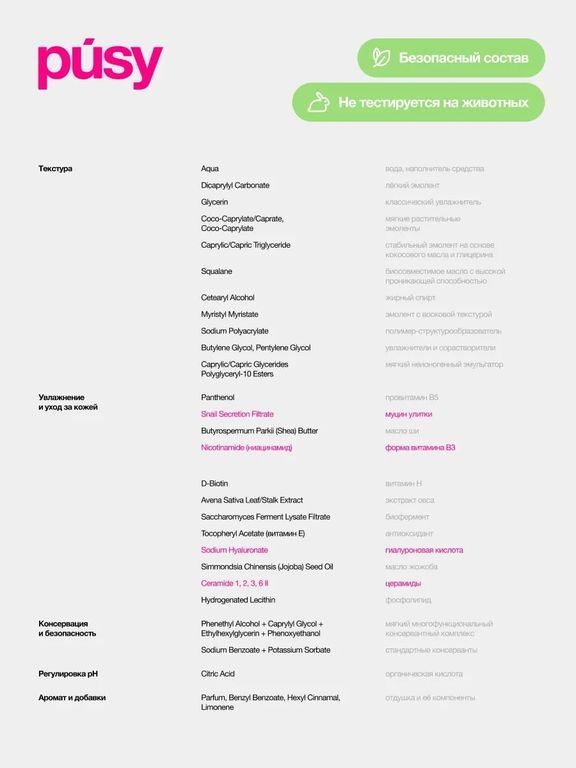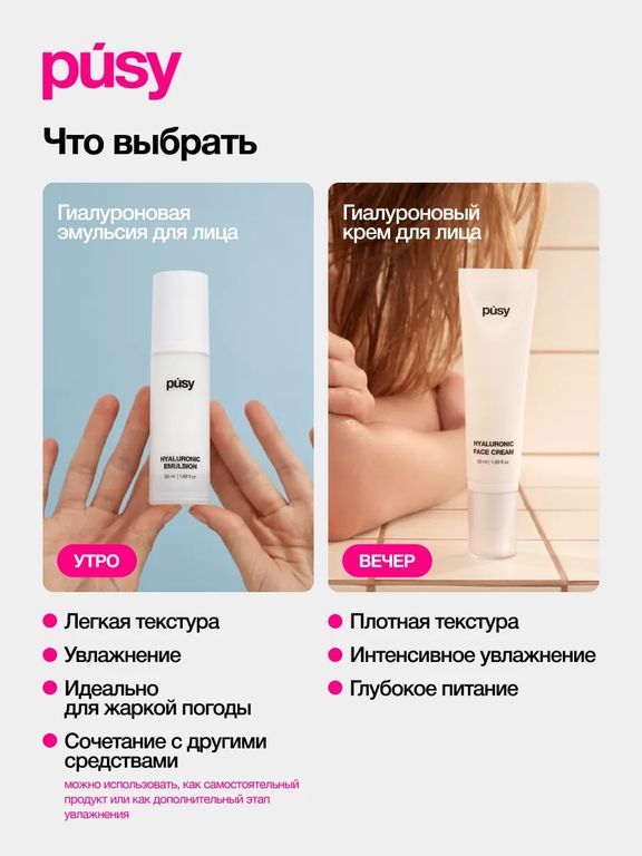 Гиалуроновая эмульсия для лица “PUSY. Hyaluronic emulsion”, 50 мл