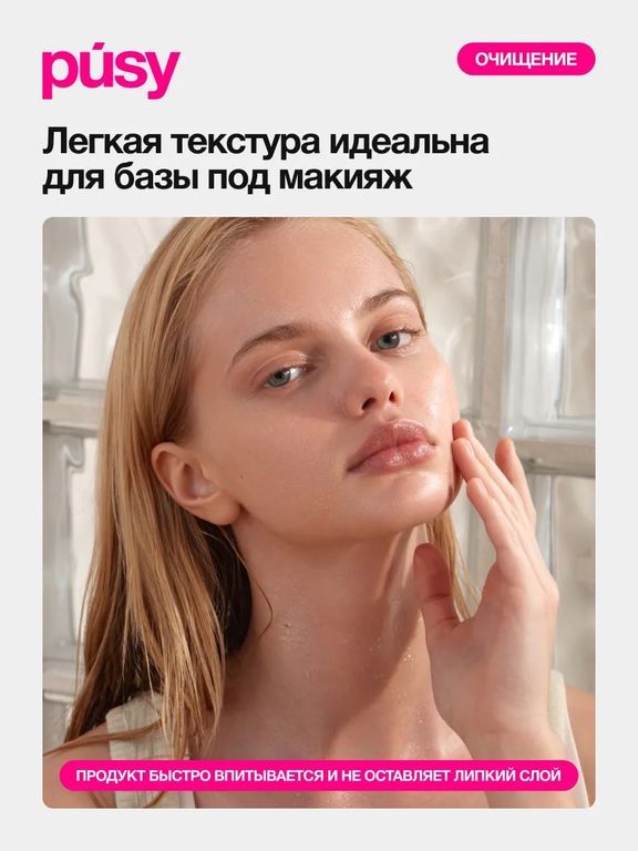 Легкое средство для ежедневного ухода убирает ощущение стянутости, ухаживает за кожей и подготавливает к макияжу.